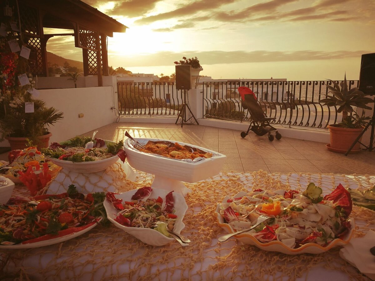 Alle "Terrazze di Eolo" puoi passare una piacevole giornata iniziando dalla prima colazione, un piacevole bagno sulla spiaggia sottostante attrezzata, un pranzo leggero terminando con una indimenticabile cena a lume di candela sotto un incantevole cielo stellato. Da noi in oltre puoi organizzare i tuoi Eventi, Meeting, Menù per gruppi personalizzabili in base alle esigenze, menù per persone vegane e celiache.